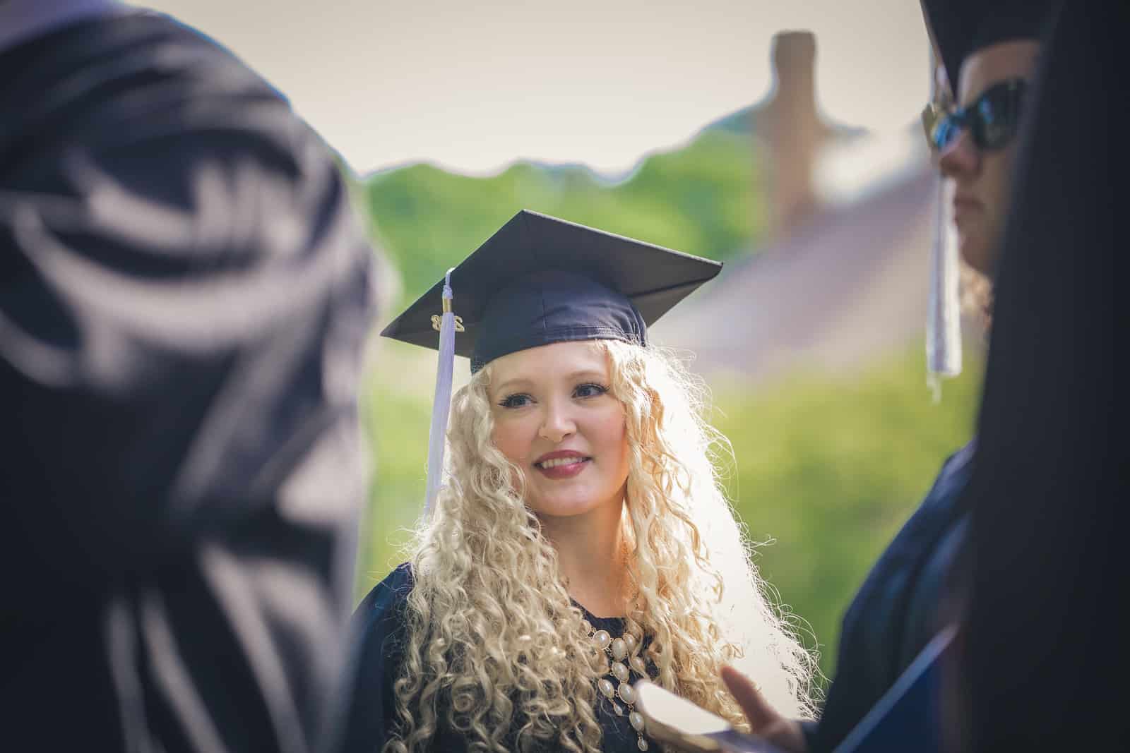 Another distinction made at University Commencement is the Alumnus of the Year Award. This year, Robertson distinguished Reverend, Dr. Colleen Derr ’13 (SOE), President of Wesley Seminary at Indiana Wesleyan University.