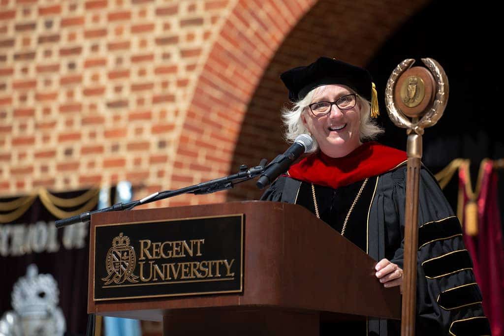 “It is truly an incredible honor,” said Derr, who explained that four Regent alum serve alongside her at Wesley Seminary. “Regent has had a profound impact on my life. It has formed us as it has formed you.”