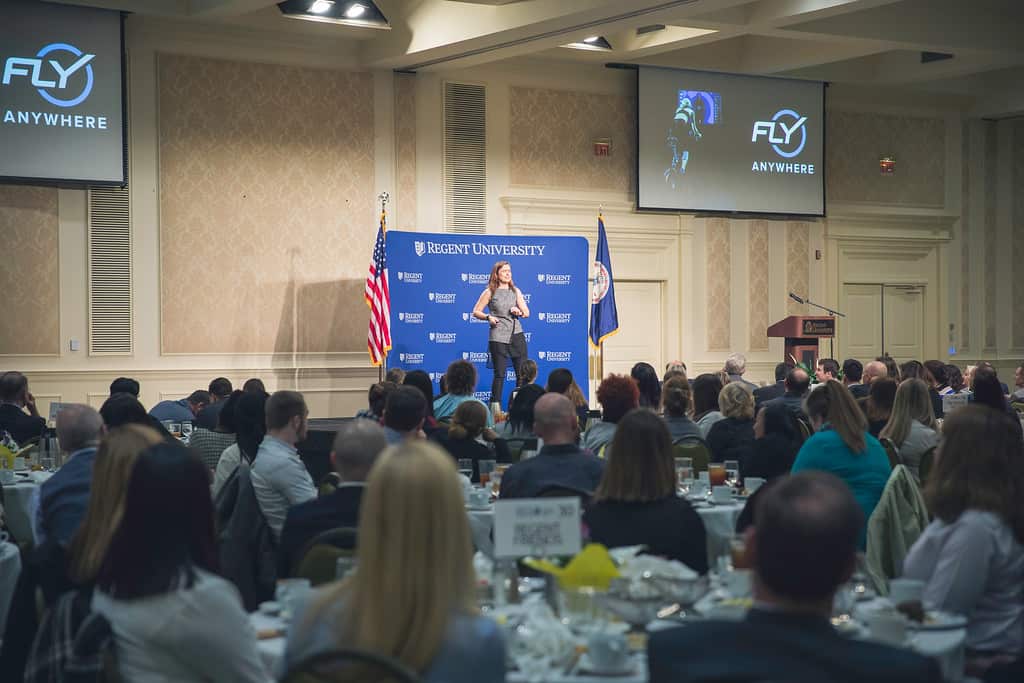On Monday, March 5, O’Hagan shared her business insights and three methods to “stepping up, standing out and succeeding,” at Regent University’s Executive Leadership Series, a monthly luncheon featuring influential women and men from around the world.